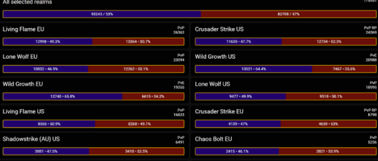 另外,我们通过官方公布的数据也可以看到,欧服和美服探索赛季目前的总活跃人数仅有约17.5万人,还不到当初开服时200万人的十分之一,WLK怀旧服的人数更是少的可怜,只有不到10万人。